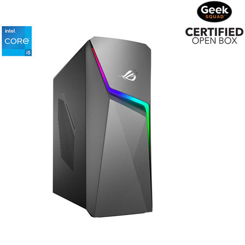 Enjoy endless gaming fun with the ASUS ROG Strix G10CE gaming PC. It features an Intel Core i5 CPU with 12GB DDR4 RAM and an NVIDIA GPU that can let you experience the latest AAA games in high quality. Take advantage of the high speed NVMe PCIe 3.0 solid state storage for faster boot up and rapid loading of games and applications.