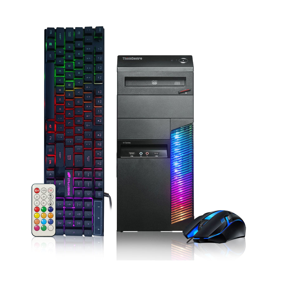 Lenovo Gaming PC Desktop computer - Intel Quad I5 up to 3.6GHz, Radeon RX 550 4G, 128G SSD + 2TB, 16GB Memory, RGB Keyboard & Mouse, DVD, WiFi & Bluetooth, Win 10 Pro-Refurbished