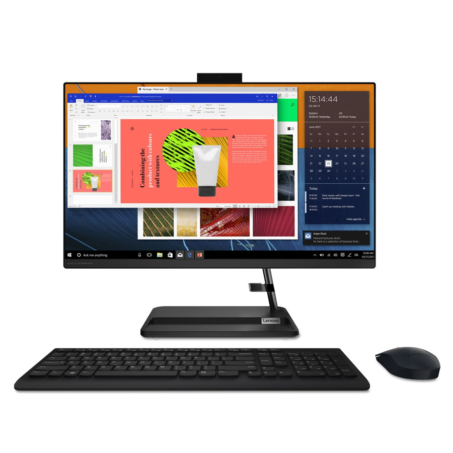 The stylish IdeaCentre AIO 3 delivers superb sound through its Harman Kardon®-certified speakers, perfectly complementing the stunning 23.8" FHD touchscreen display.