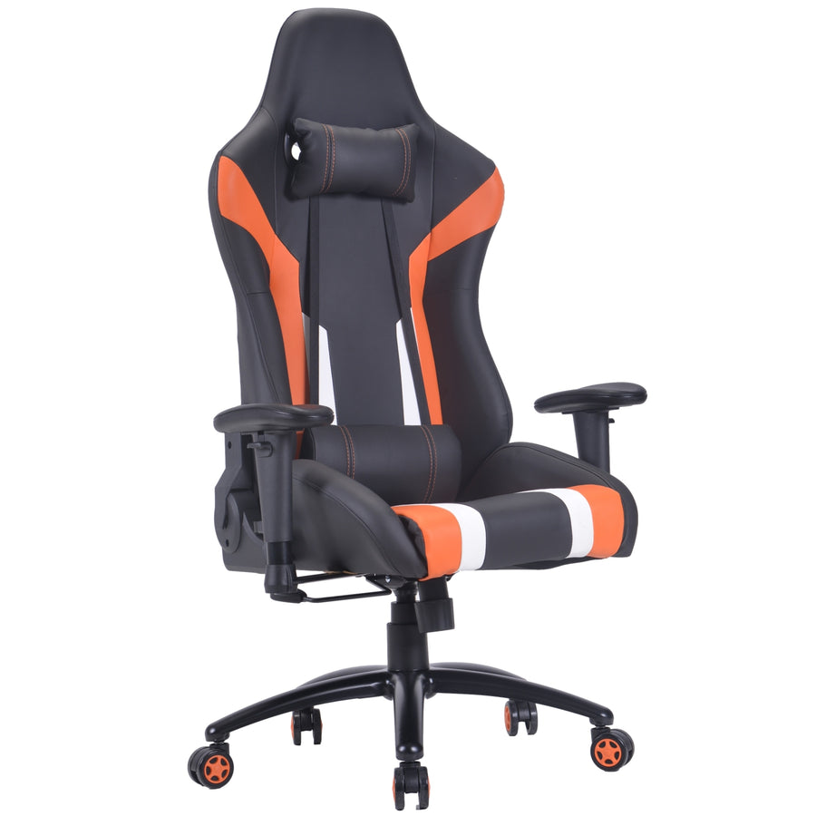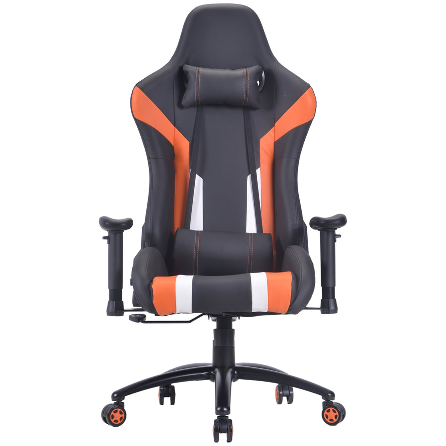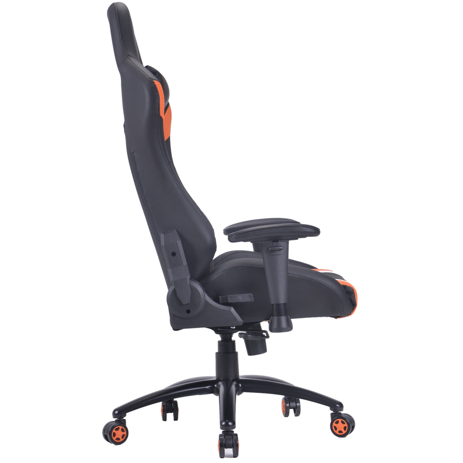 This professional grade gaming chair is made of a premium quality metal frame structure, thick comfort foam molded to set on the frame, and then upholstered with supreme quality PU Leather. The backrest reclining and seat rocking mechanism offer extraordinary comfort for daily use of up to 8 hours. The professionally curved design with cushioned headrest and adjustable detachable lumbar support provide ergonomic support for nearly all body structures.